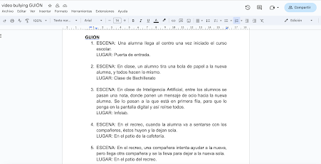 El alumnado de 1º de bachillerato de la asignatura Inteligencia Artificial, con el fin de poner en práctica la edición de vídeo que puede generar la Inteligencia Artificial, han llevado a cabo la grabación, edición y montaje de un vídeo relacionado con el bullying que se sufre en el instituto.